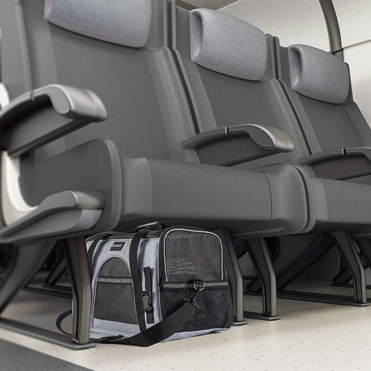 Pet Carrier for Cat and Dog, Portable Folding Pet Carrier Airline Approved, Suitable for Small Dogs, Puppies, and Medium-Sized Cats (Grey with Bowl)
